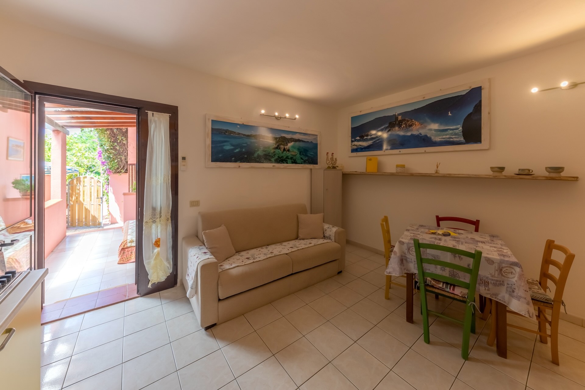 soggiorno più cucina con divano letto matrimoniale tv